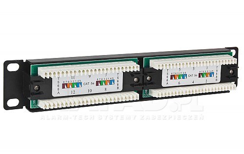 12-portový patch panel 10" PP12 je spolehlivé a pevné zařízení podepsané značkou Rack Systems. Panel se používá k ukončení kabeláže v počítačových sítích nebo instalacích informačních a komunikačních technologií a je integrálním bodem připojení síťových zařízení. Panel má výšku 1U a je určen pro instalaci do rackových skříní 10“. Jednoduchý přístup ke konektorům na zadní straně, umožňuje rychlou konfiguraci sítě a usnadňuje jejich údržbu. Patch panel 10" je také často používané v CCTV systémech, funguje jako zařízení pro přenos video, audio a telemetrických signálů. Těleso patch panel 10" je vyrobena z vysoce kvalitního kovu, takže je odolný a trvanlivý. Patch panel PP-12 pracuje s UTP cat 5e a má provozní frekvence umožňuje přenos vysokorychlostního připojení - 1000Base-T Gigabit Ethernet.