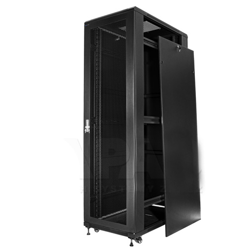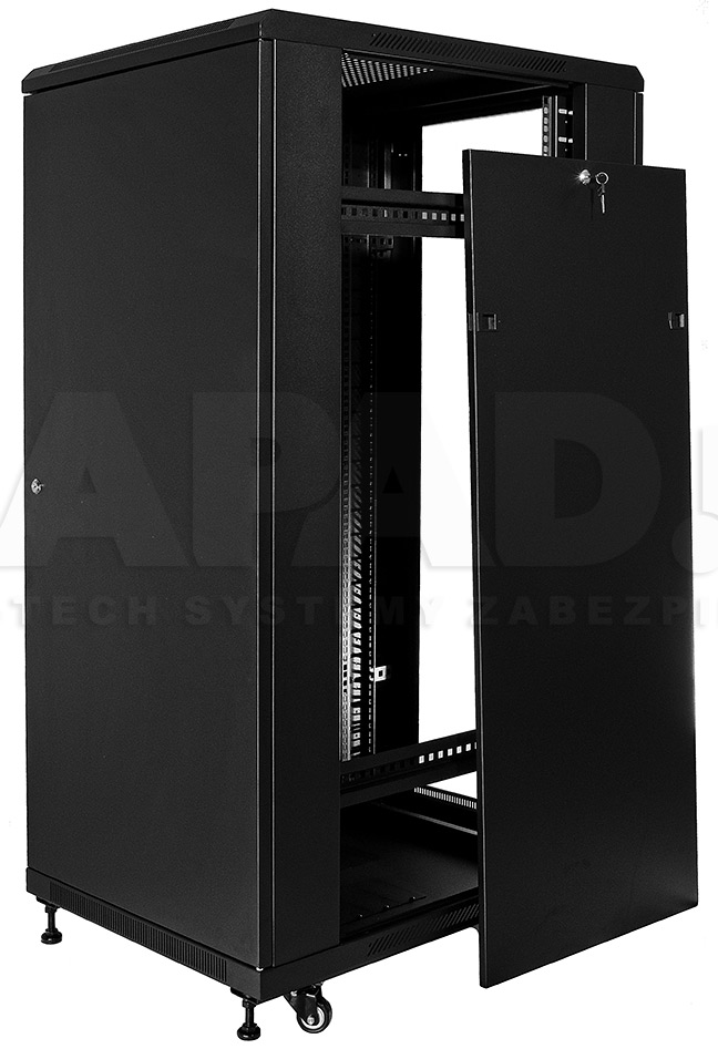 Přední dveře jsou vyrobeny z tvrzeného skla, které zvyšují jeho mechanickou pevnost a tepelnou stabilitu. Zbytek stěn jsou vyrobeny z barevně lakovaného plechu, takže je odolný vůči korozi, oxidaci a odstranění barvy. Boční stěny mohou být odstraněny (zacvakávání), což vznikne ještě větší přístup k zařízení. Mohou být také uzamčeny, což zvyšuje bezpečnost zařízení instalovaných v rozvaděči. Je zde také možnost odemikání a zamikání na klíč zadních dveří. Pojízdná racková skříň je navržen tak, aby dveře bylo možné namontovat vlevo nebo vpravo. Ve skříni existují různé možnosti pro vstup kabelů (nahoře, dole).