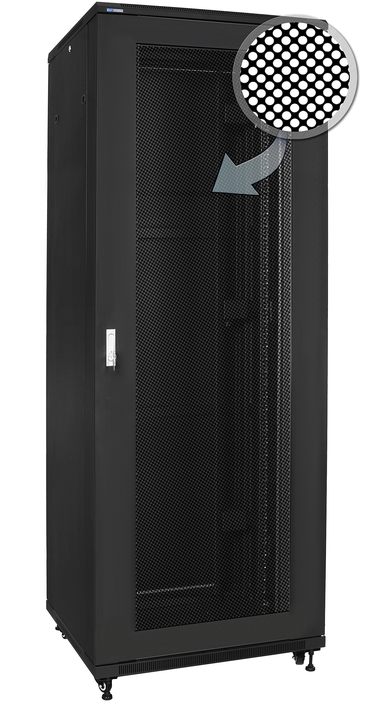 19" Rack skříň S8847DP/B (47U 800x800mm, pojízdná,matná, perforované dveře)