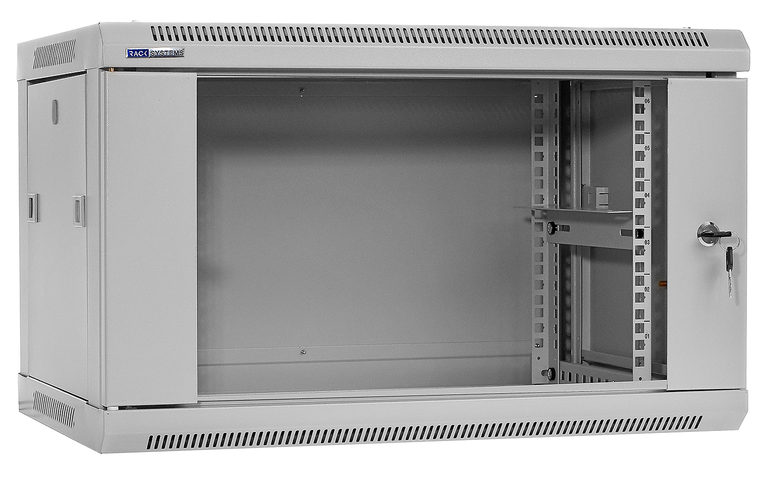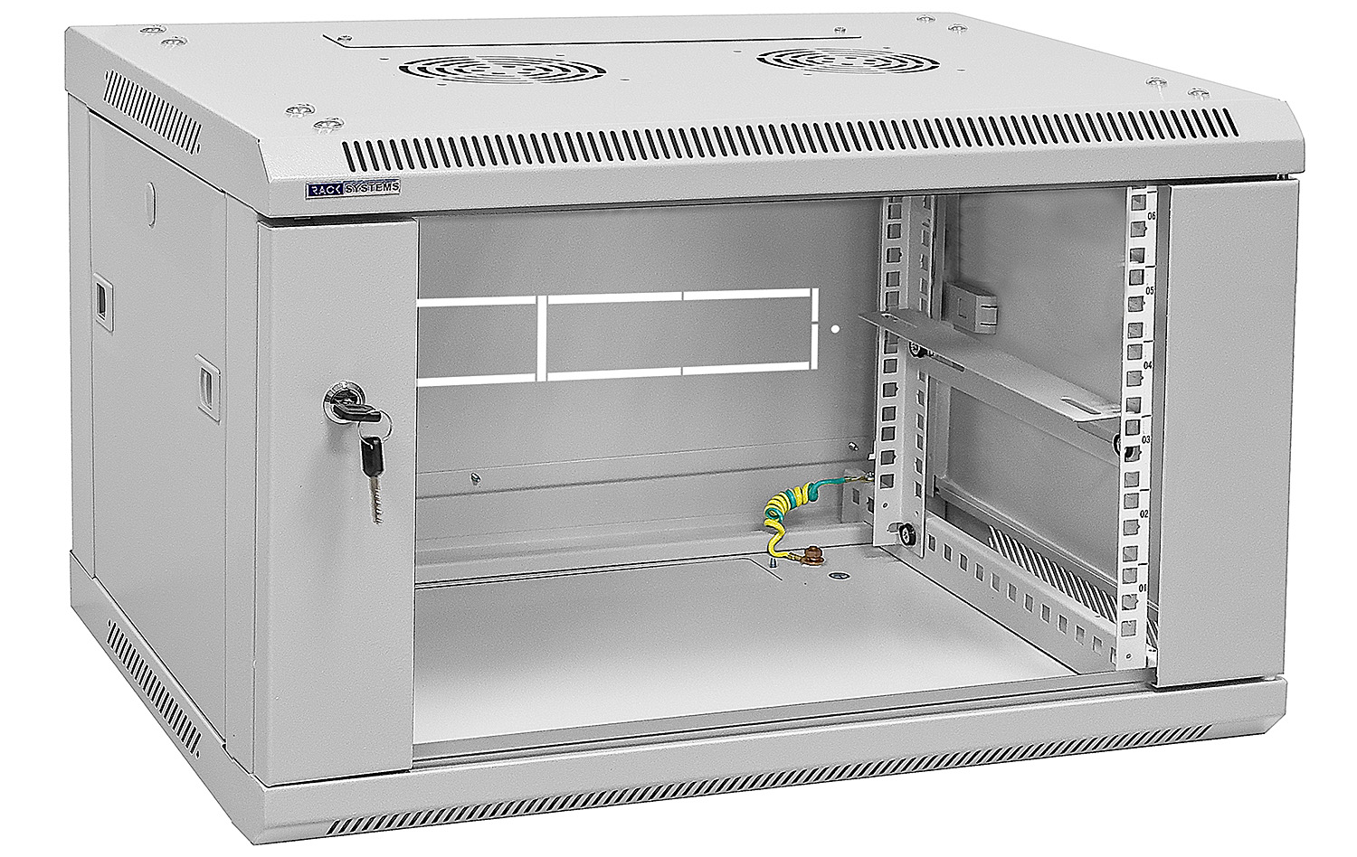 Přední dveře jsou vyrobeny z tvrzeného skla, které zvyšují jeho mechanickou pevnost a tepelnou stabilitu. Zbytek stěn jsou vyrobeny z barevně lakovaného plechu, takže je odolný vůči korozi, oxidaci a odstranění barvy. Boční stěny mohou být odstraněny (zacvakávání), což vznikne ještě větší přístup k zařízení. Mohou být také uzamčeny, což zvyšuje bezpečnost zařízení instalovaných v rozvaděči. Je zde také možnost odemikání a zamikání na klíč zadních dveří. Pojízdná racková skříň je navržen tak, aby dveře bylo možné namontovat vlevo nebo vpravo. Ve skříni existují různé možnosti pro vstup kabelů (nahoře, dole).
