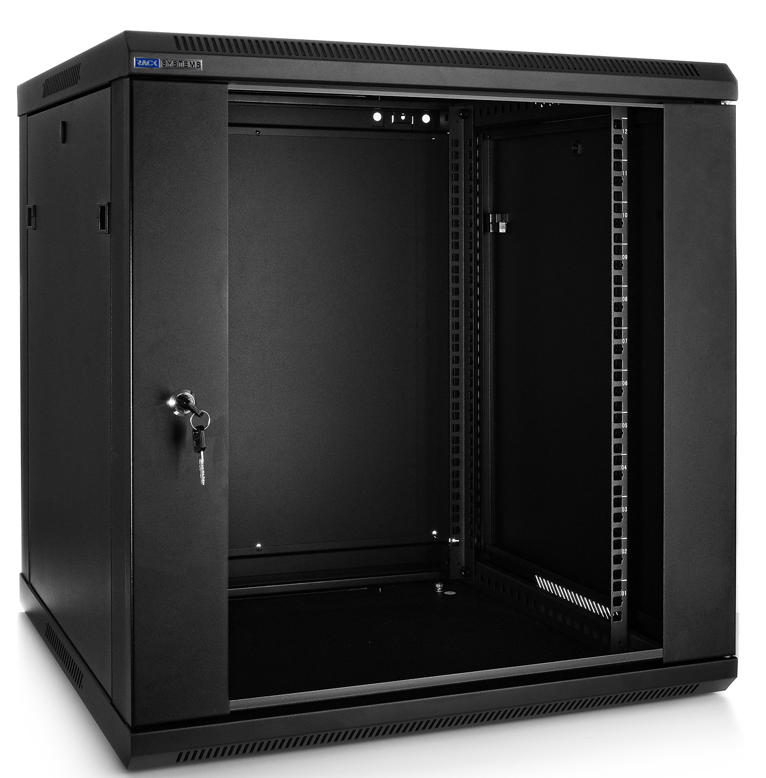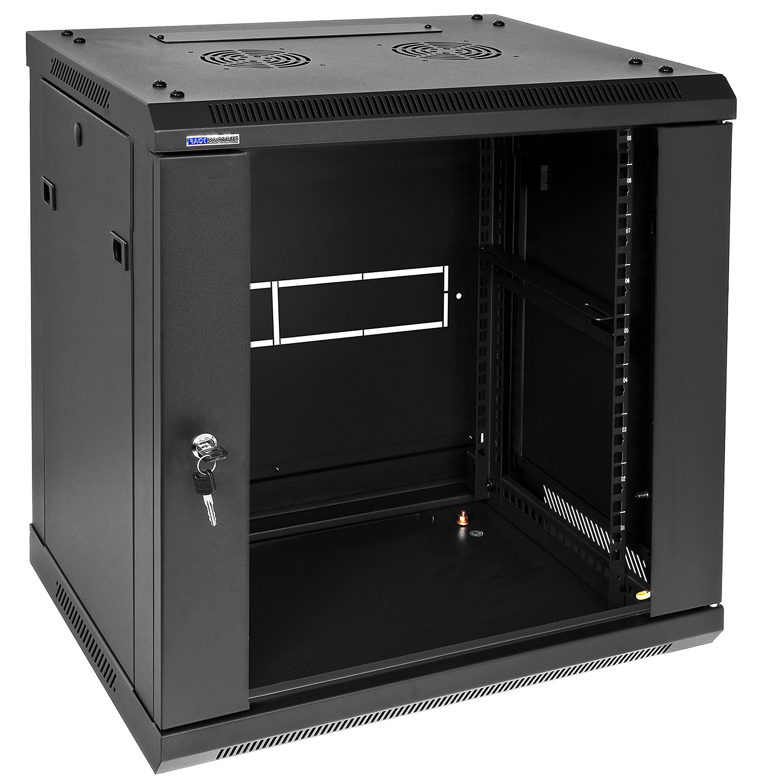 Přední dveře jsou vyrobeny z tvrzeného skla, které zvyšují jeho mechanickou pevnost a tepelnou stabilitu. Zbytek stěn jsou vyrobeny z barevně lakovaného plechu, takže je odolný vůči korozi, oxidaci a odstranění barvy. Boční stěny mohou být odstraněny (zacvakávání), což vznikne ještě větší přístup k zařízení. Mohou být také uzamčeny, což zvyšuje bezpečnost zařízení instalovaných v rozvaděči. Je zde také možnost odemikání a zamikání na klíč zadních dveří. Pojízdná racková skříň je navržen tak, aby dveře bylo možné namontovat vlevo nebo vpravo. Ve skříni existují různé možnosti pro vstup kabelů (nahoře, dole).