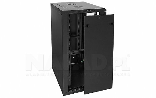 Přední dveře jsou vyrobeny z tvrzeného skla, které zvyšují jeho mechanickou pevnost a tepelnou stabilitu. Zbytek stěn jsou vyrobeny z barevně lakovaného plechu, takže je odolný vůči korozi, oxidaci a odstranění barvy. Boční stěny mohou být odstraněny (zacvakávání), což vznikne ještě větší přístup k zařízení. Mohou být také uzamčeny, což zvyšuje bezpečnost zařízení instalovaných v rozvaděči. Je zde také možnost odemikání a zamikání na klíč zadních dveří. Pojízdná racková skříň je navržen tak, aby dveře bylo možné namontovat vlevo nebo vpravo. Ve skříni existují různé možnosti pro vstup kabelů (nahoře, dole).
