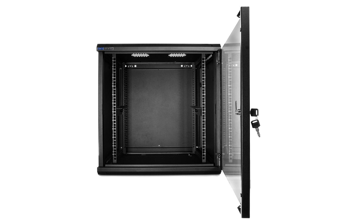 Přední dveře jsou vyrobeny z tvrzeného skla, které zvyšují jeho mechanickou pevnost a tepelnou stabilitu. Zbytek stěn jsou vyrobeny z barevně lakovaného plechu, takže je odolný vůči korozi, oxidaci a odstranění barvy. Boční stěny mohou být odstraněny (zacvakávání), což vznikne ještě větší přístup k zařízení. Mohou být také uzamčeny, což zvyšuje bezpečnost zařízení instalovaných v rozvaděči. Je zde také možnost odemikání a zamikání na klíč zadních dveří. Pojízdná racková skříň je navržen tak, aby dveře bylo možné namontovat vlevo nebo vpravo. Ve skříni existují různé možnosti pro vstup kabelů (nahoře, dole).