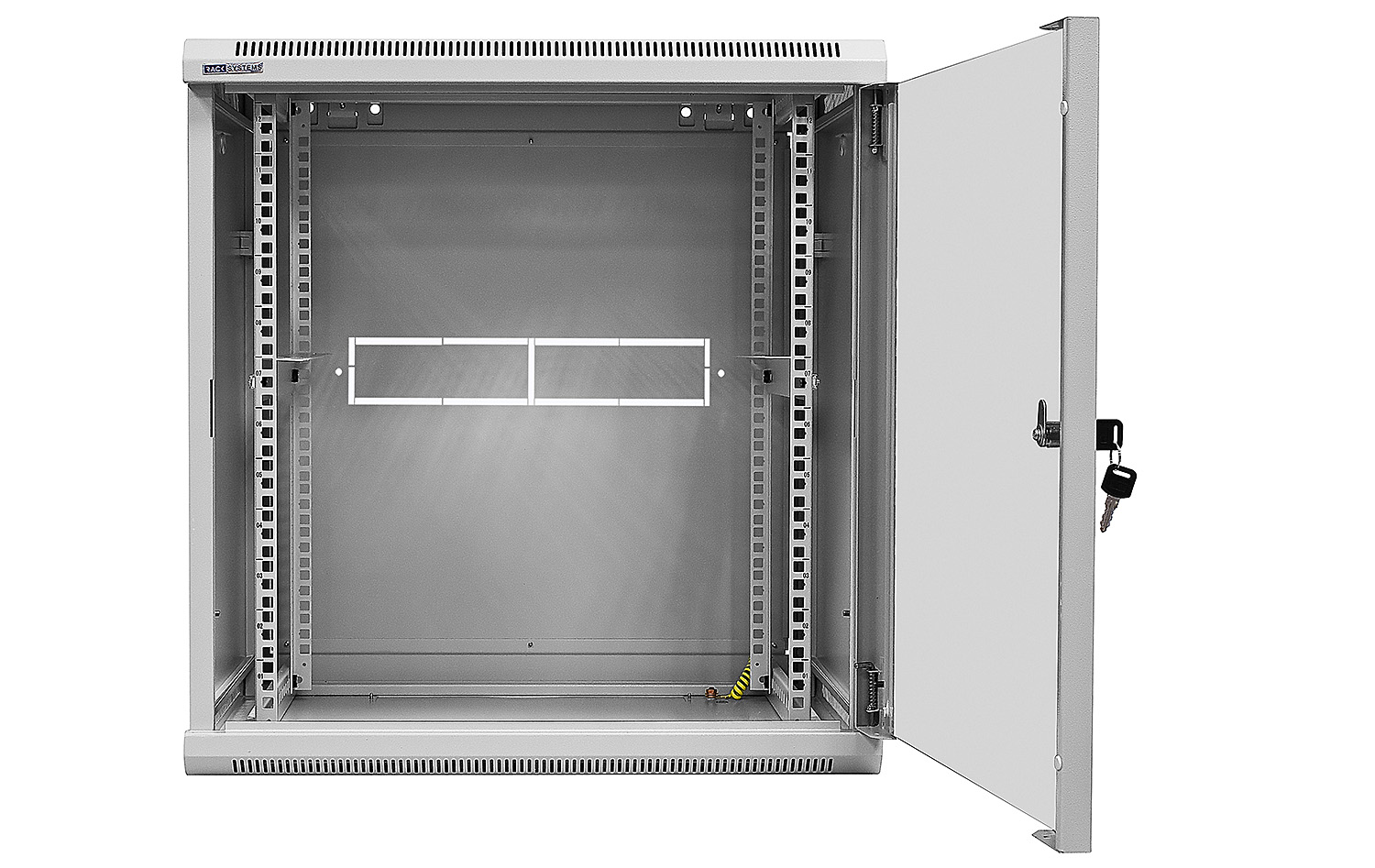 Přední dveře jsou vyrobeny z tvrzeného skla, které zvyšují jeho mechanickou pevnost a tepelnou stabilitu. Zbytek stěn jsou vyrobeny z barevně lakovaného plechu, takže je odolný vůči korozi, oxidaci a odstranění barvy. Boční stěny mohou být odstraněny (zacvakávání), což vznikne ještě větší přístup k zařízení. Mohou být také uzamčeny, což zvyšuje bezpečnost zařízení instalovaných v rozvaděči. Je zde také možnost odemikání a zamikání na klíč zadních dveří. Pojízdná racková skříň je navržen tak, aby dveře bylo možné namontovat vlevo nebo vpravo. Ve skříni existují různé možnosti pro vstup kabelů (nahoře, dole).