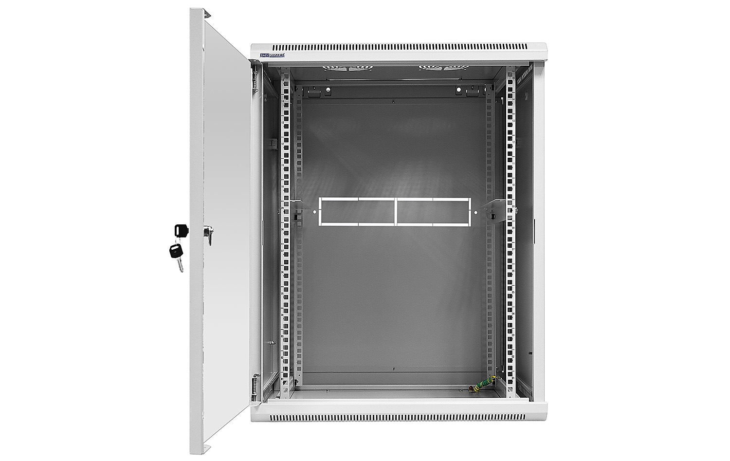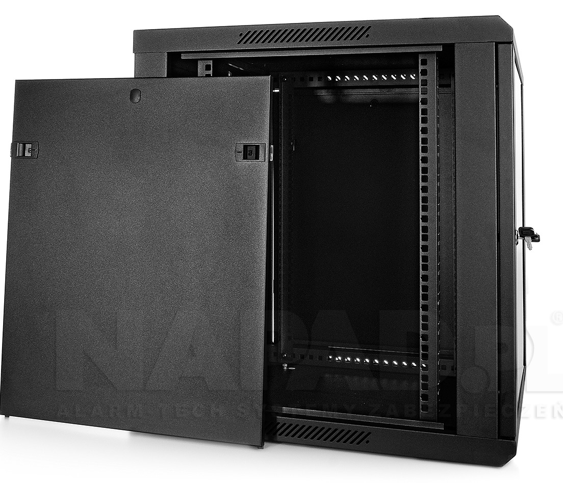 Přední dveře jsou vyrobeny z tvrzeného skla, které zvyšují jeho mechanickou pevnost a tepelnou stabilitu. Zbytek stěn jsou vyrobeny z barevně lakovaného plechu, takže je odolný vůči korozi, oxidaci a odstranění barvy. Boční stěny mohou být odstraněny (zacvakávání), což vznikne ještě větší přístup k zařízení. Mohou být také uzamčeny, což zvyšuje bezpečnost zařízení instalovaných v rozvaděči. Je zde také možnost odemikání a zamikání na klíč zadních dveří. Pojízdná racková skříň je navržen tak, aby dveře bylo možné namontovat vlevo nebo vpravo. Ve skříni existují různé možnosti pro vstup kabelů (nahoře, dole).