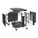 Přední dveře jsou vyrobeny z tvrzeného skla, které zvyšují jeho mechanickou pevnost a tepelnou stabilitu. Zbytek stěn jsou vyrobeny z barevně lakovaného plechu, takže je odolný vůči korozi, oxidaci a odstranění barvy. Boční stěny mohou být odstraněny (zacvakávání), což vznikne ještě větší přístup k zařízení. Mohou být také uzamčeny, což zvyšuje bezpečnost zařízení instalovaných v rozvaděči. Je zde také možnost odemikání a zamikání na klíč zadních dveří. Pojízdná racková skříň je navržen tak, aby dveře bylo možné namontovat vlevo nebo vpravo. Ve skříni existují různé možnosti pro vstup kabelů (nahoře, dole).