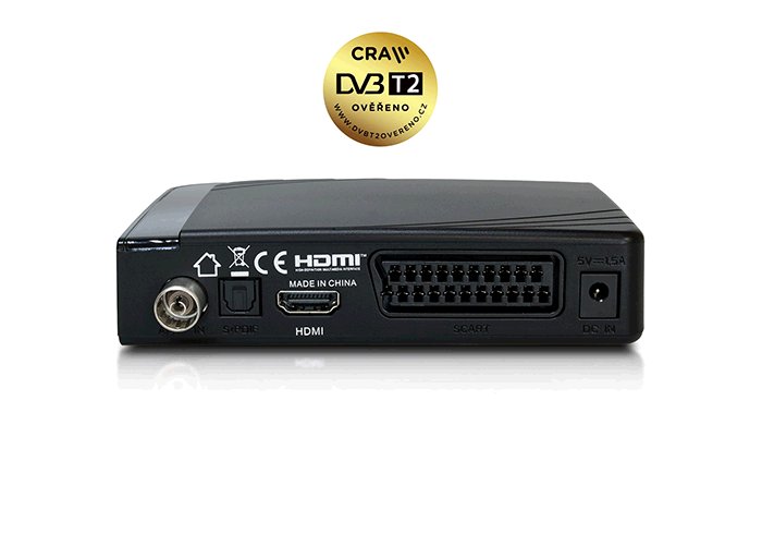 Přijímač je určen pro terestriální a kabelové vysílání v nejnovějším standardu DVB-T / T2 / C s podporou kodeku H.265 HEVC. Jednoduché a maličké provedení je vhodné na umístění i za TV. Obsahuje čtečku karet, HDMI výstup, SCART pro starší TV, USB 2.0, optický výstup a vstup pro externí IR čidlo (není součástí balení). Možnost multimediálního přehrávání ve FullHD 1080p. Nahrávání programů je možné v reálném čase nebo přes jednoduché časové nahrávání z EPG. EPG až na 7 dní. Balení obsahuje externí napájecí zdroj 5V a dálkové ovládání.