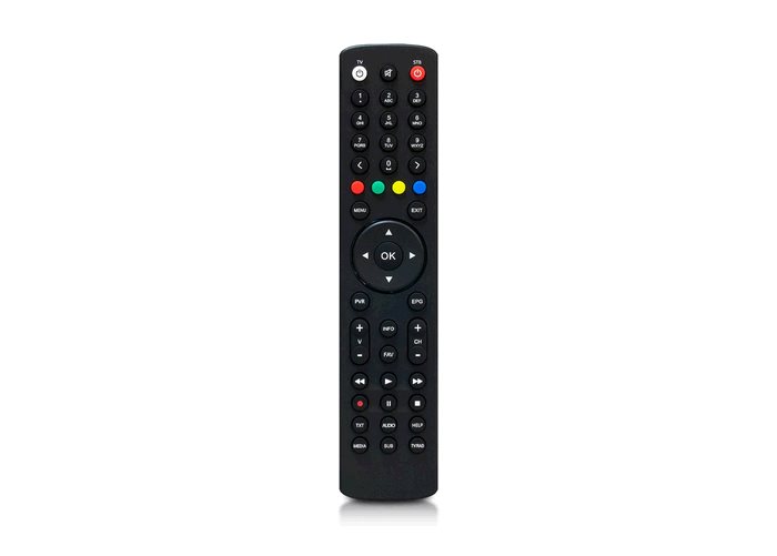 S tímto ovládáním můžete kromě přijímače zapnout také televizor a ovládat hlasitost na Vaší TV. Intuitivní rozmístění tlačítek v ergonomickém slim designu as matnou povrchovou úpravou pro eliminaci otisků prstů. Segmentační rozdělení tlačítkových skupin. Barevná tlačítka jsou umístěna v blízkosti tlačítka OK a směrových tlačítek. Optimálnější rozdělení tlačítek pro orientaci po hmatu.