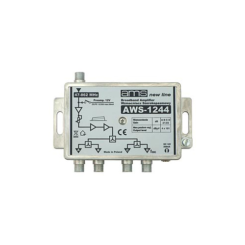 Anténní zesilovač AWS-1244 (47-862MHz, 22dB, 4x výstup)