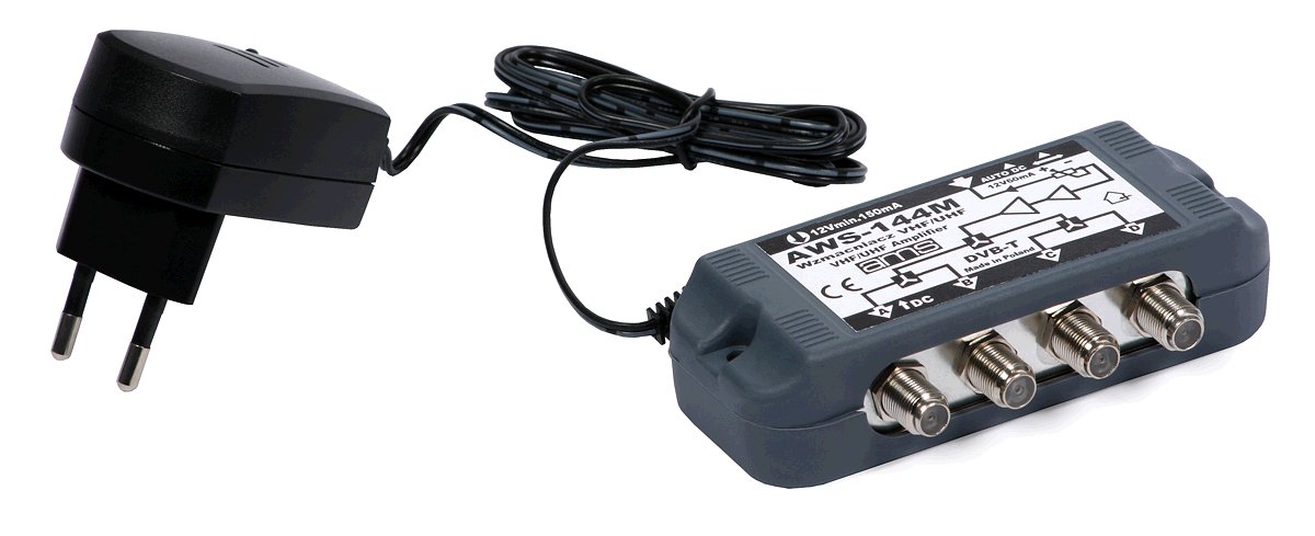 Širokopásmový zesilovač AWS-141M s jedním vstupem (40 - 860 MHz) a jedním výstupem pro domácí TV instalace. Zesílení 20 dB. Nastavitelné zesílení v rozsahu 14 dB. Zakončení na F konektory. Součástí balení je i napájecí zdroj. Zesilovač je vybaven automati
