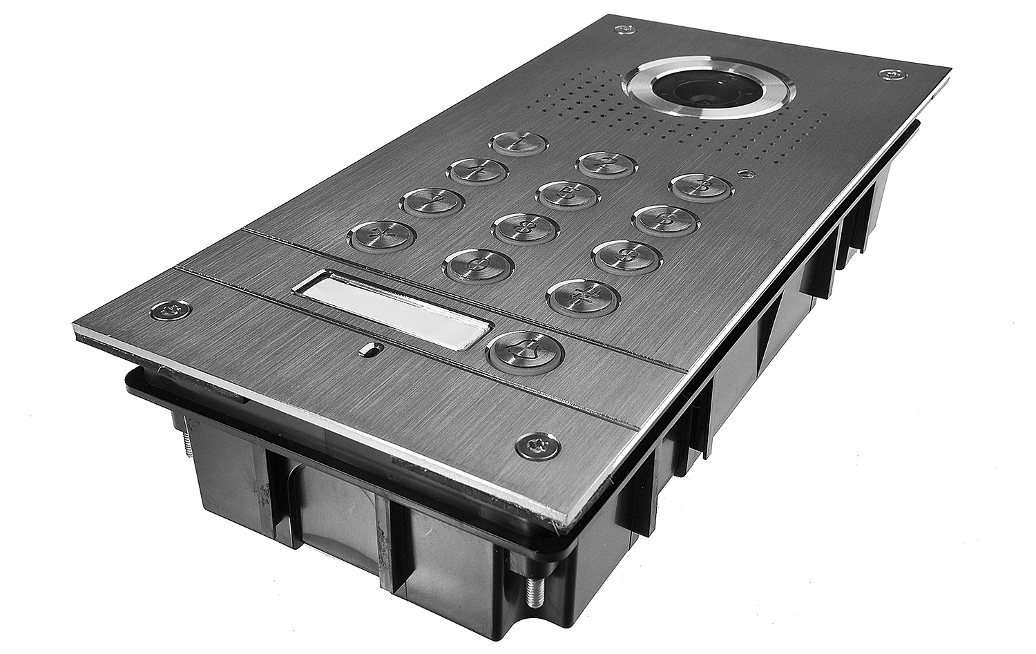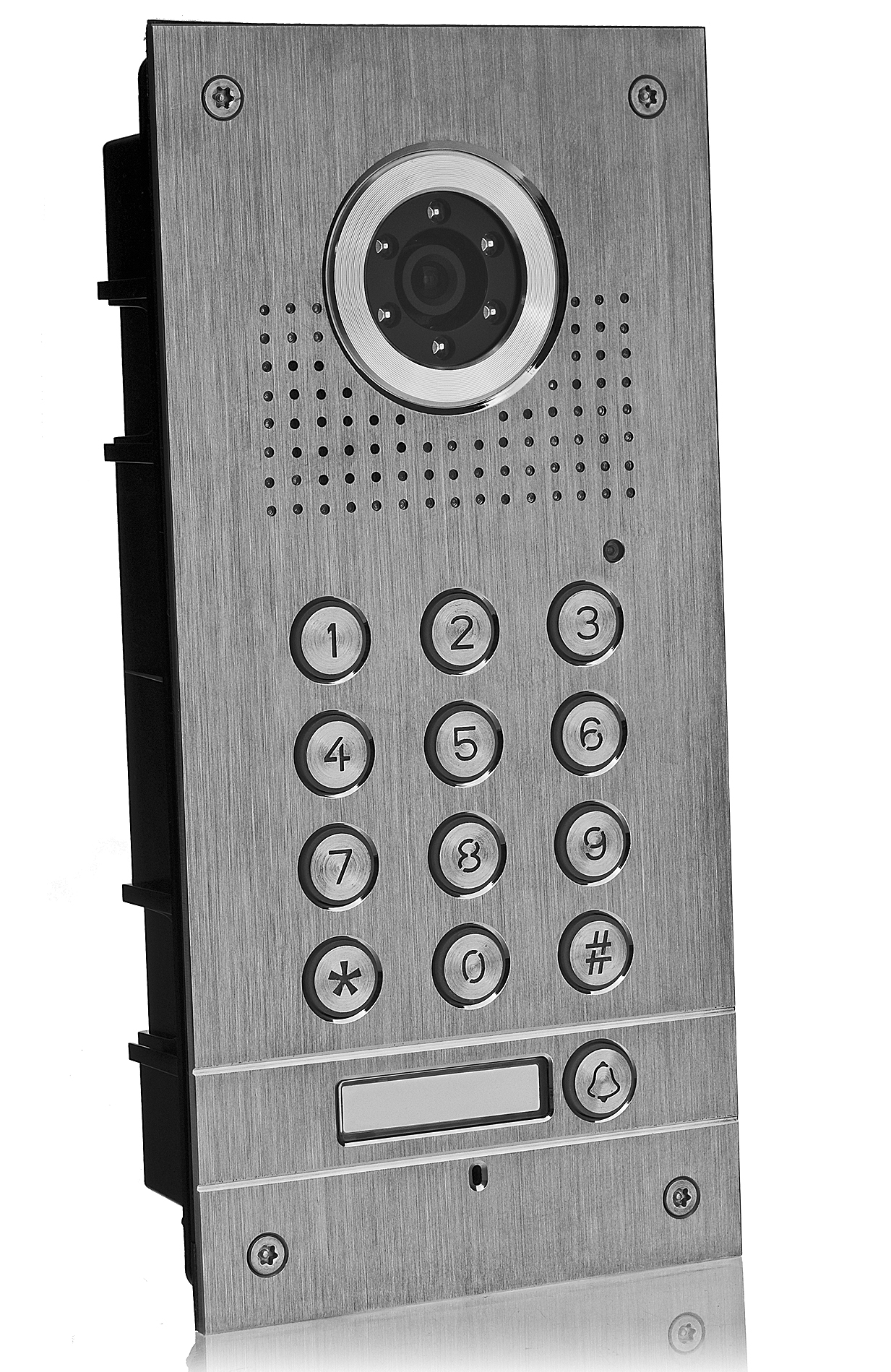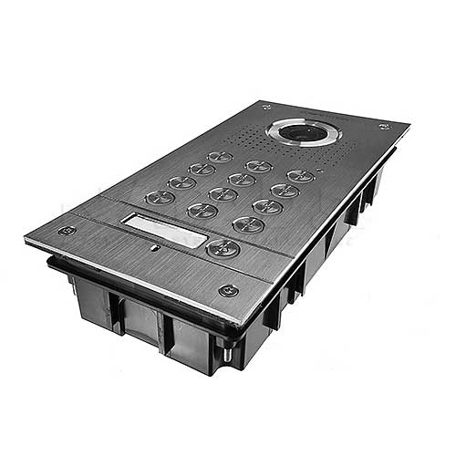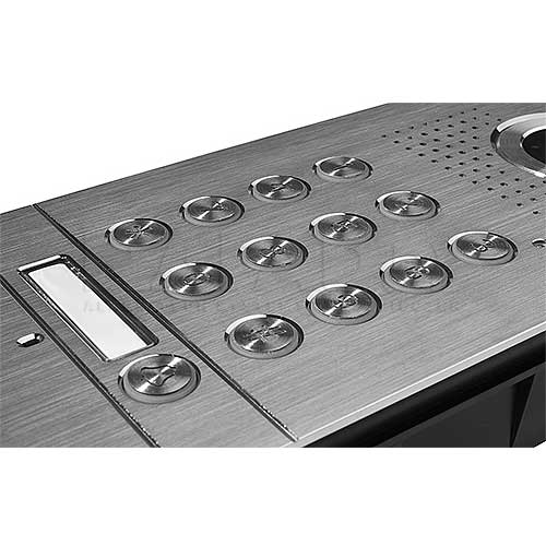 Spolehlivost a záruka nepřetržitého provozu dveřní stanice zaručuje vodotěsné pouzdro vyztužené čelním panel vyrobeným z odolné nerezové oceli. Možnost hladkého manipulace i v náročných podmínkách okolního prostředí daných zařízení navíc potvrzuje vysoký stupeň ochrany IP55.