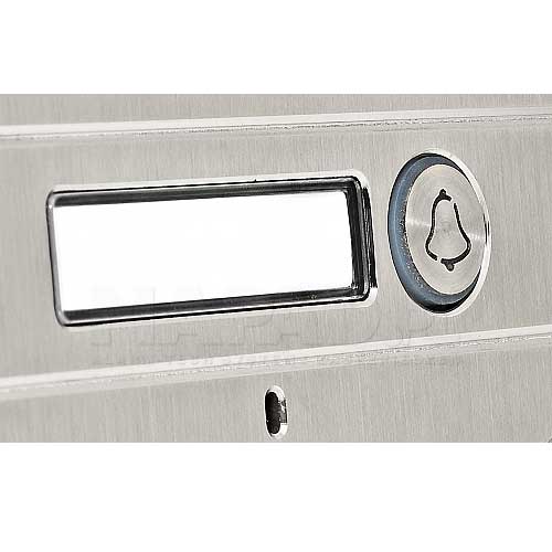 Spolehlivost a záruka nepřetržitého provozu dveřní stanice zaručuje vodotěsné pouzdro vyztužené čelním panel vyrobeným z odolné nerezové oceli. Možnost hladkého manipulace i v náročných podmínkách okolního prostředí daných zařízení navíc potvrzuje vysoký stupeň ochrany IP55.