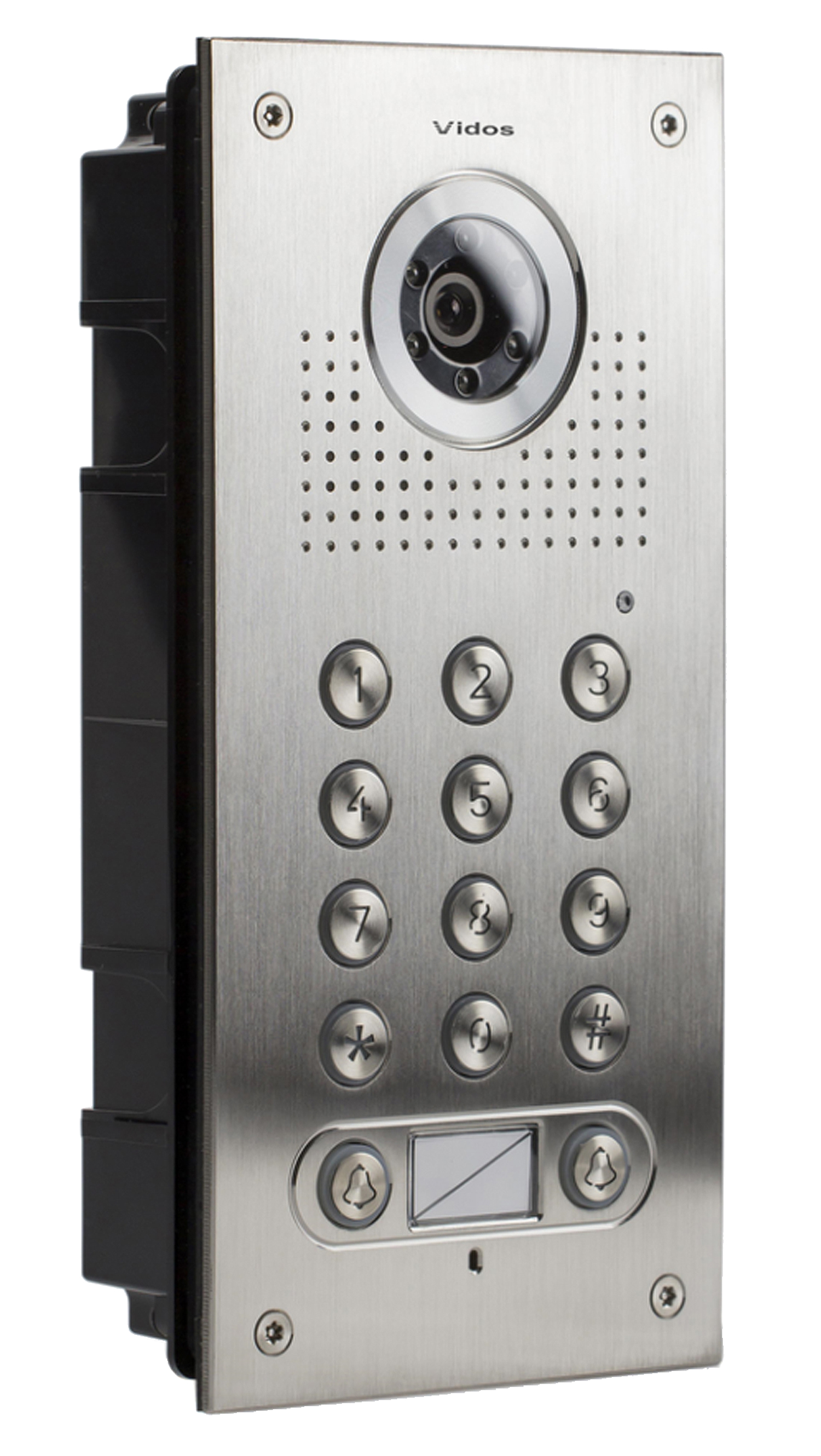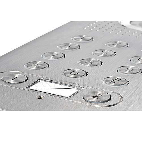 Spolehlivost a záruka nepřetržitého provozu dveřní stanice zaručuje vodotěsné pouzdro vyztužené čelním panel vyrobeným z odolné nerezové oceli. Možnost hladkého manipulace i v náročných podmínkách okolního prostředí daných zařízení navíc potvrzuje vysoký stupeň ochrany IP55.