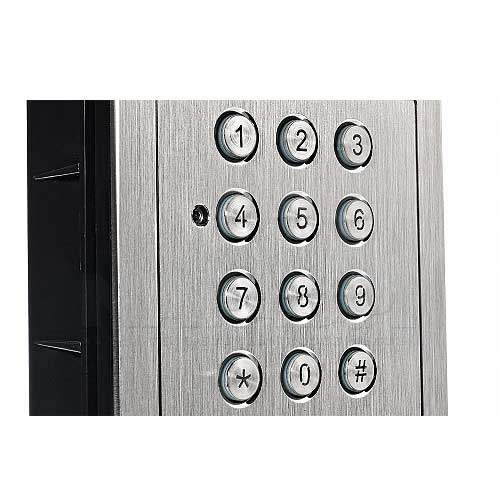 Spolehlivost a záruka nepřetržitého provozu dveřní stanice zaručuje vodotěsné pouzdro vyztužené čelním panel vyrobeným z odolné nerezové oceli. Možnost hladkého manipulace i v náročných podmínkách okolního prostředí daných zařízení navíc potvrzuje vysoký stupeň ochrany IP55.