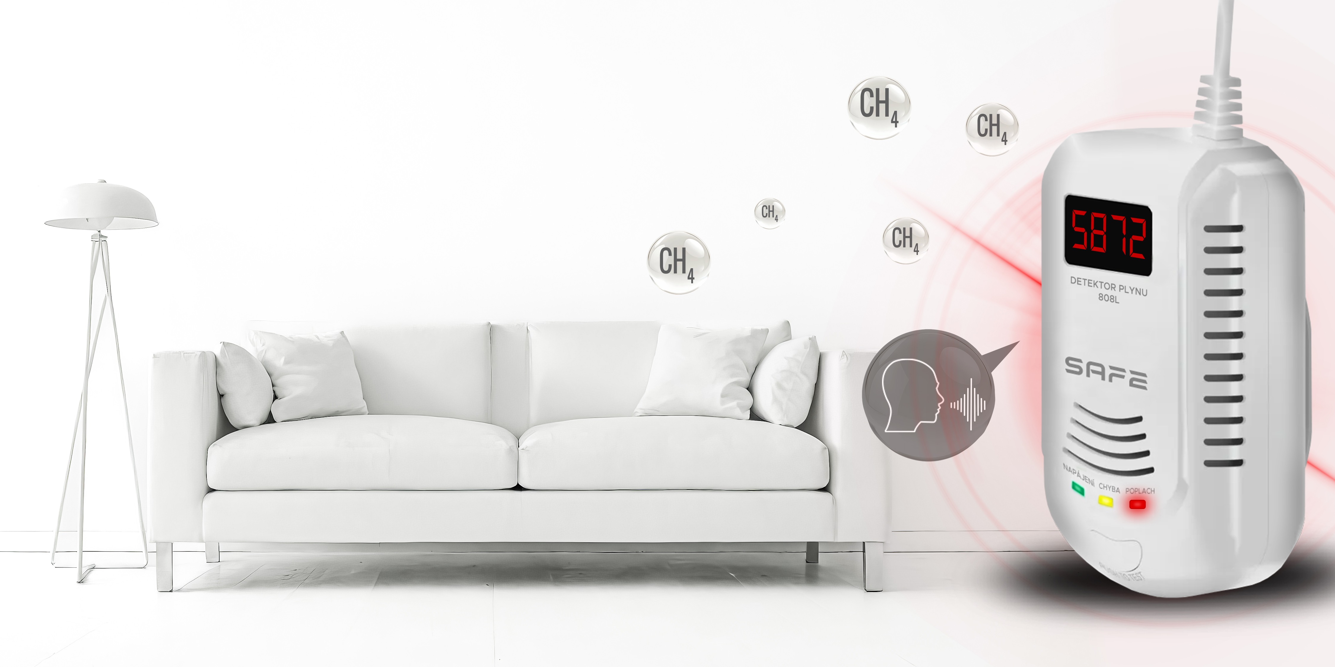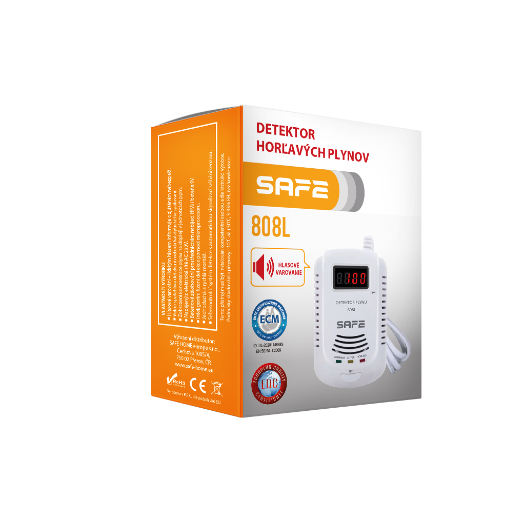 Hlásič plynu SAFE – 808L se ideálně hodí pro detekci úniku plynu ze všech domácích plynových spotřebičů a plynových kotlů. Detekuje všechny hořlavé plyny běžně se vyskytující v domácnostech.