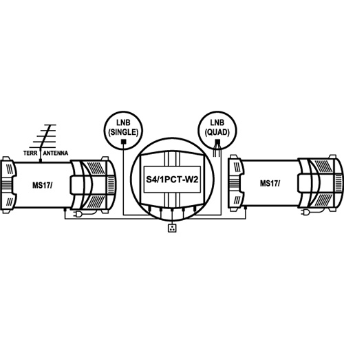 4in/1out univerzální DiSEqC přepínač určený k využití jedním uživatelem v různých konfiguracích přijímací soustavy. Jeden ze vstupů propouští trvale pozemní pásmo na výstup.