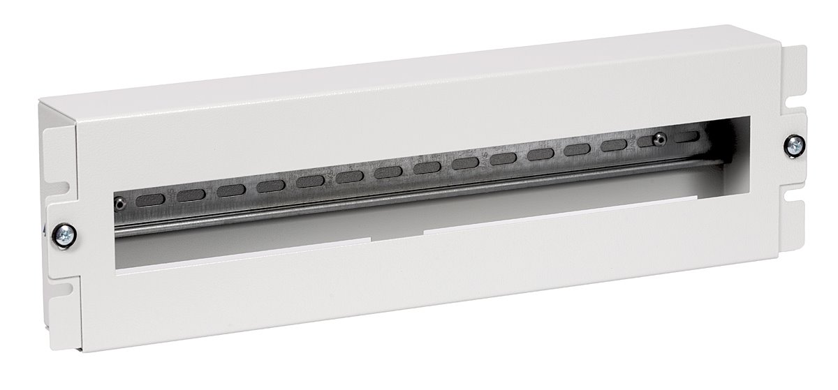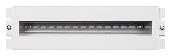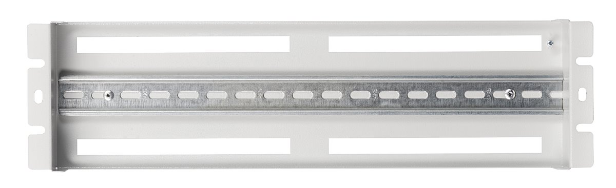 Napěťový rozváděč 3U s lištou DIN pro instalaci elektrických modulů typu „S“ a dalších komponent modulárních přístrojů. Vše z oceli Dc01 a s práškovým nástřikem. Lze namontovat až 23 modulů typu S o šířce 17,5 cm. Vyrobeno z ocelového plechu a opatřeno práškovou barvou ve světle šedé barvě.