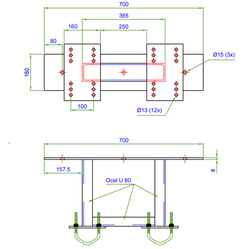 Držák příhradového st. 365x365x365 vrchní část - žár + 8x třmen k vinklu