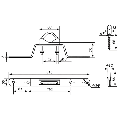Držák stožáru OMM-50W6 - 7,5cm od zdi