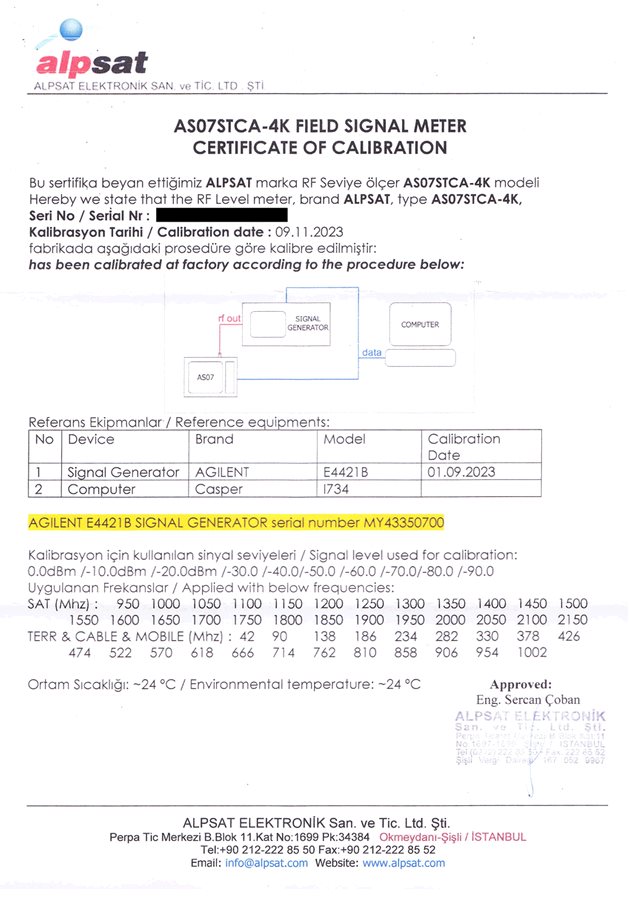 Každý měřicí přístroj AS07STCA-4K je dodáván s certifikátem kalibrace, který dokládá špičkovou kvalitu zpracování a zaručuje spolehlivost měření v televizních systémech.