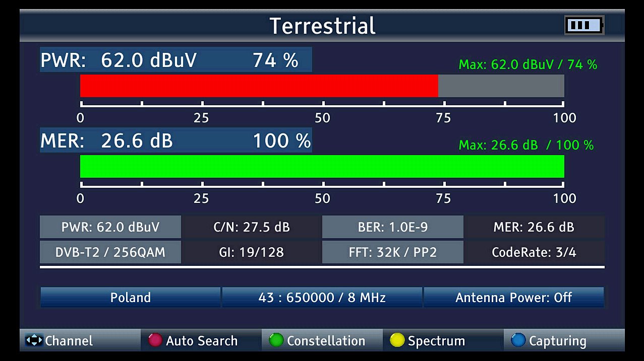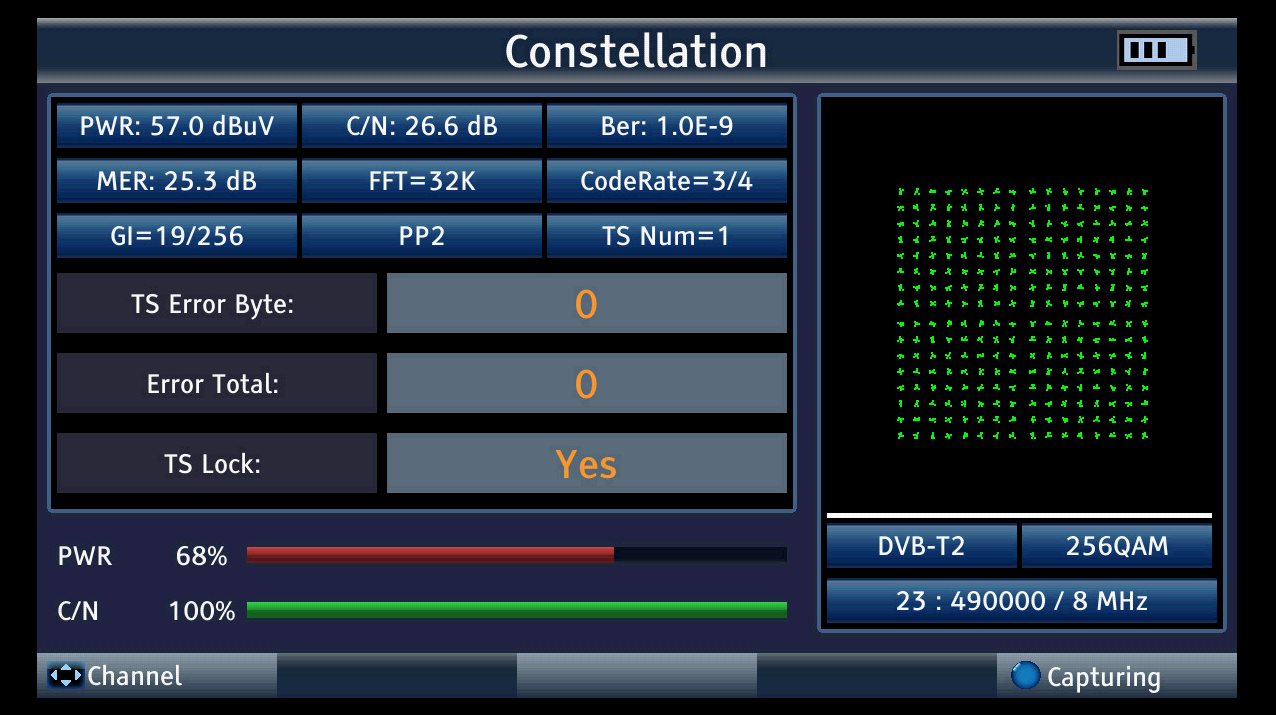 DVB-S2/T2/C H.265 Signal ST-6986 (spektrální analyzér, optický vstup)
