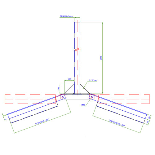 Hřebenová základna se stožárem 1,5m na dlaždice | žár