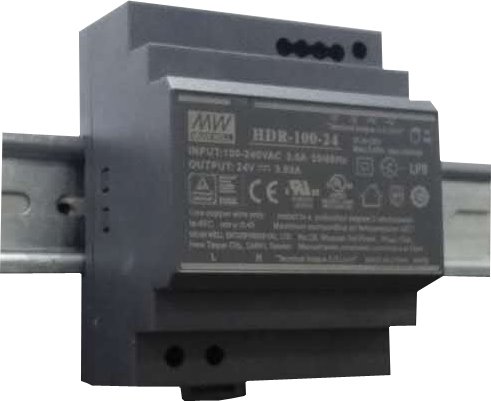 Zdroje řady HDR-100 jsou cenově dostupné ultra tenké zdroje. Model HDR-100-12 poskytuje stejnosměrné výstupní napětí 12V s možností regulace v rozmezí 12V - 13,8V. Montuje se na DIN lišty TS-35/7,5 i TS-35/15, kde zabere 70mm na šířku (odpovídá 4SU). Zdroj je připraven na široké rozpětí vstupního napětí od 85VAC až po 264VAC a splňuje evropskou normu EN 61000-3-2.