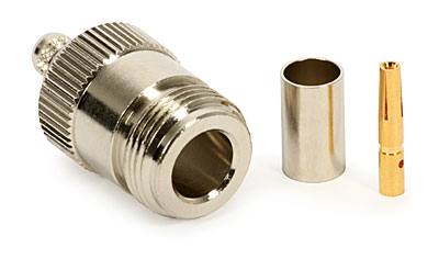 Konektor N female krimpl. je určen na kabely H155 nebo RF240. Konektor se nejčastěji používá pro připojení bleskojistky na 5GHz a pigtailů. Pozor, tento konektor nelze přidělat na kabely Belden H1000, RG58, LX195, C195 ani H125! Konektor je krimplovací a
