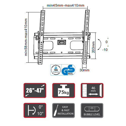 Nástěnný držák LCD/Plazma TV Signal PLB-42l (32''-55''), naklápěcí