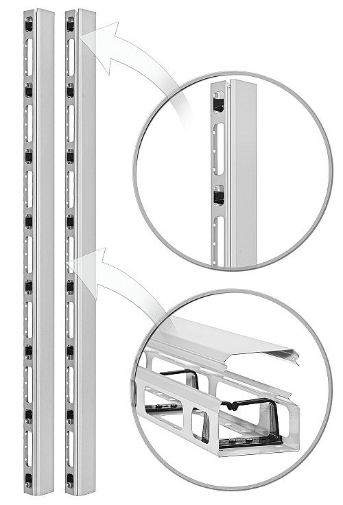 Svislý uzamykatelný organizér kabelů OP42 od společnosti RACK SYSTEMS je kompatibilní se skříněmi o výšce 42U. Organizér je vyroben z kovu a je připevněn svisle k nosníkům RACK.
