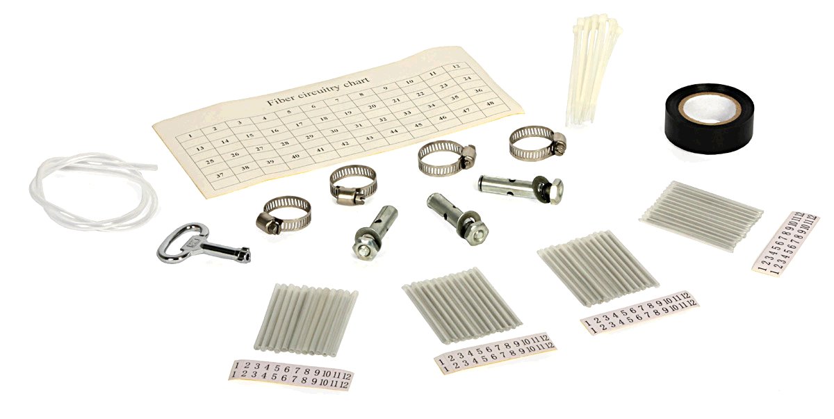 The wall-mounted fiber optic distribution frame ULTIMODE TB-48B allows for easy organization of fiber optic cables (up to 96 fibers, depending on the installed adapters.) The holes inside the box are suitable for installation of SC simplex adapters (connecting up to 48 fibers with SC or FC connectors, or up to 96 fibers with LC connectors).