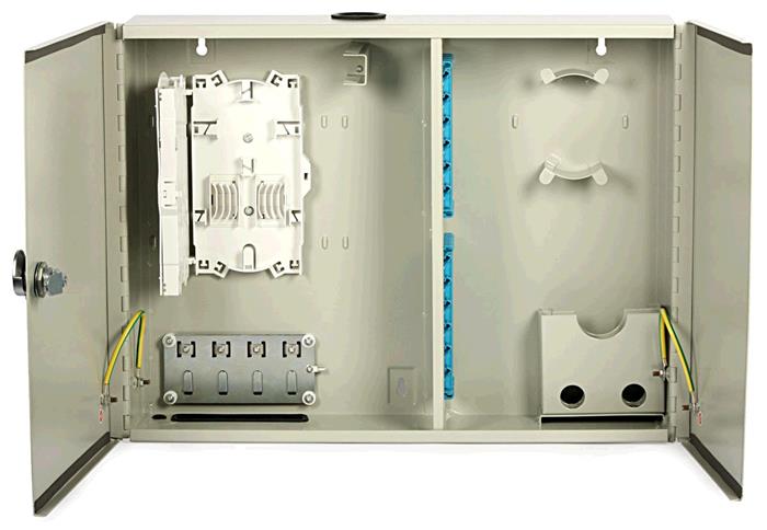 The box is intended for wall mounting at the end of an optical line. It is used in internal fiber optic networks e.g. in apartment houses, office buildings, warehouses.