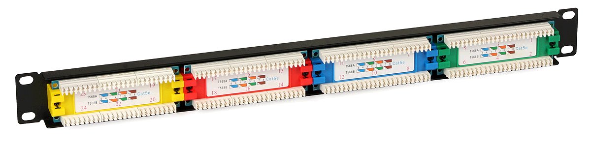 Patch Panel (1U, 24 CAT5e RJ45 portů při 45 stupních)