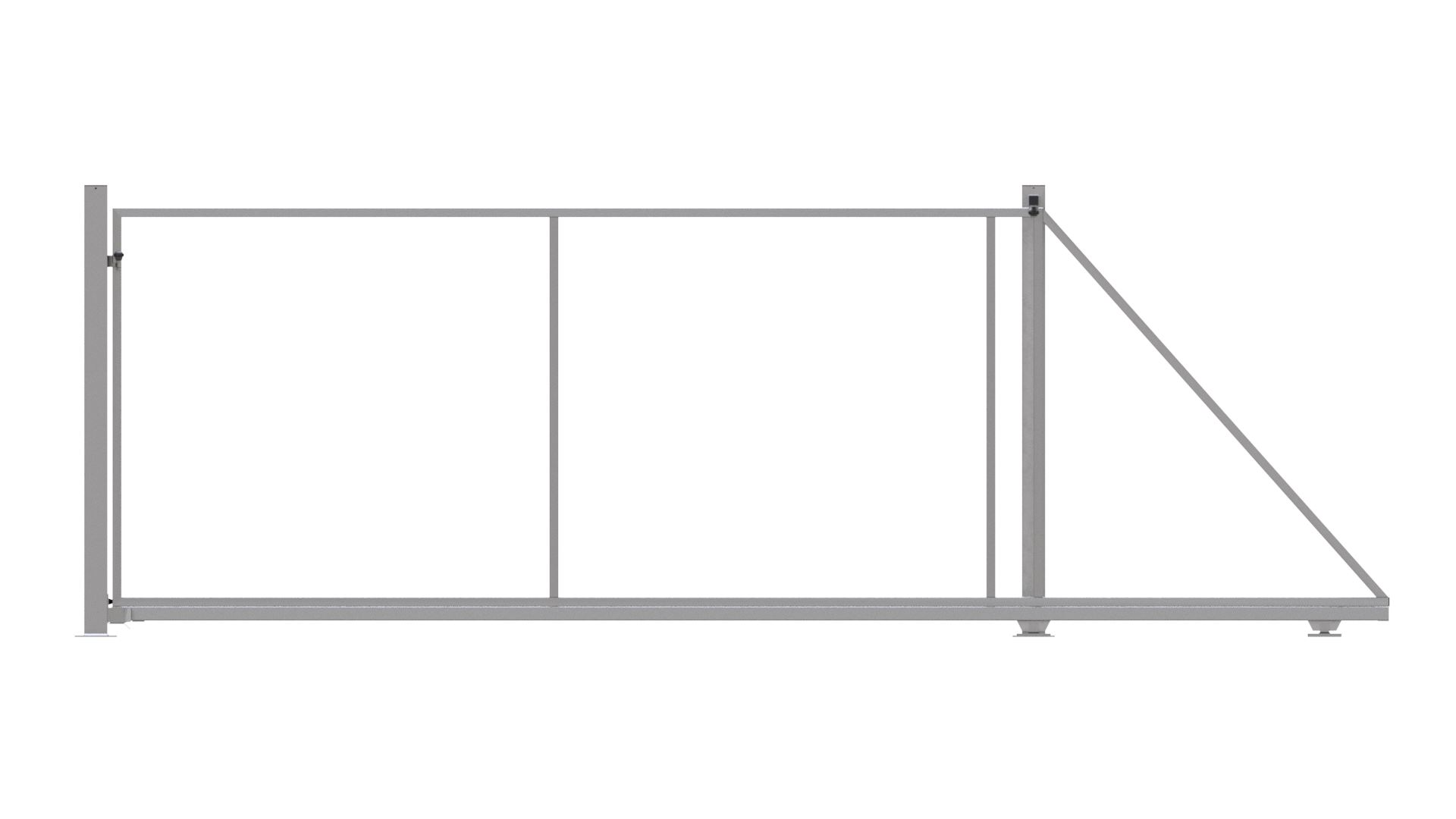Posuvná brána samonosná, výška 1,2m (průjezd 3,5m), pro vlastní výplň, s pojezdy a sloupky. zinek žár