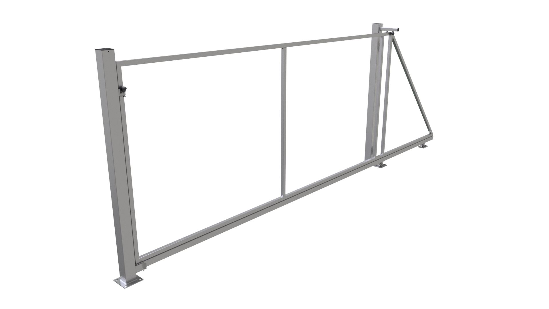 Posuvná brána samonosná, výška 1,8m (průjezd 3,5m), pro vlastní výplň, s pojezdy a sloupky. zinek žár