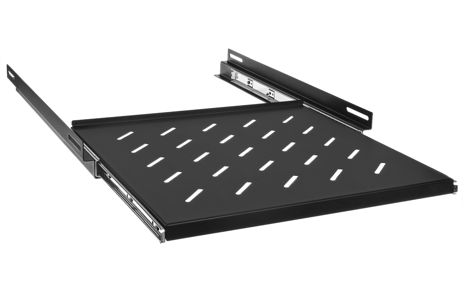 PWD 800 značky RACK SYSTEMS je výsuvná police určená pro 19" rackové skříně o hloubce 800 mm. Příslušenství umožňuje umístění zařízení nebo příslušenství do skříní, které nemají možnost uchycení 19" RACK. Připojené vodící lišty umožňují plné rozšíření police, a tak snadný a rychlý přístup k zařízením, jako je klávesnice nebo CCTV rekordér. PWD-800 je vyroben z vysoce kvalitní ocelový plech, který zajišťuje dostatečnou odolnost proti poškození a vysokou trvanlivost. Instalace police do skříně je velmi jednoduchá a čtyřbodový se provádí pomocí šroubů obsažených v sadě.