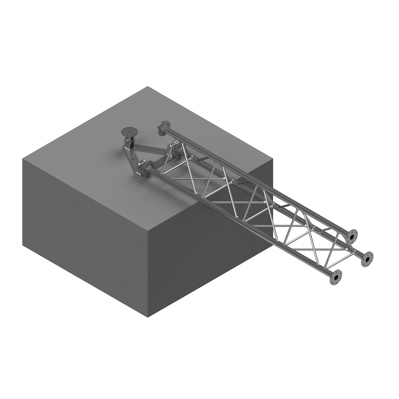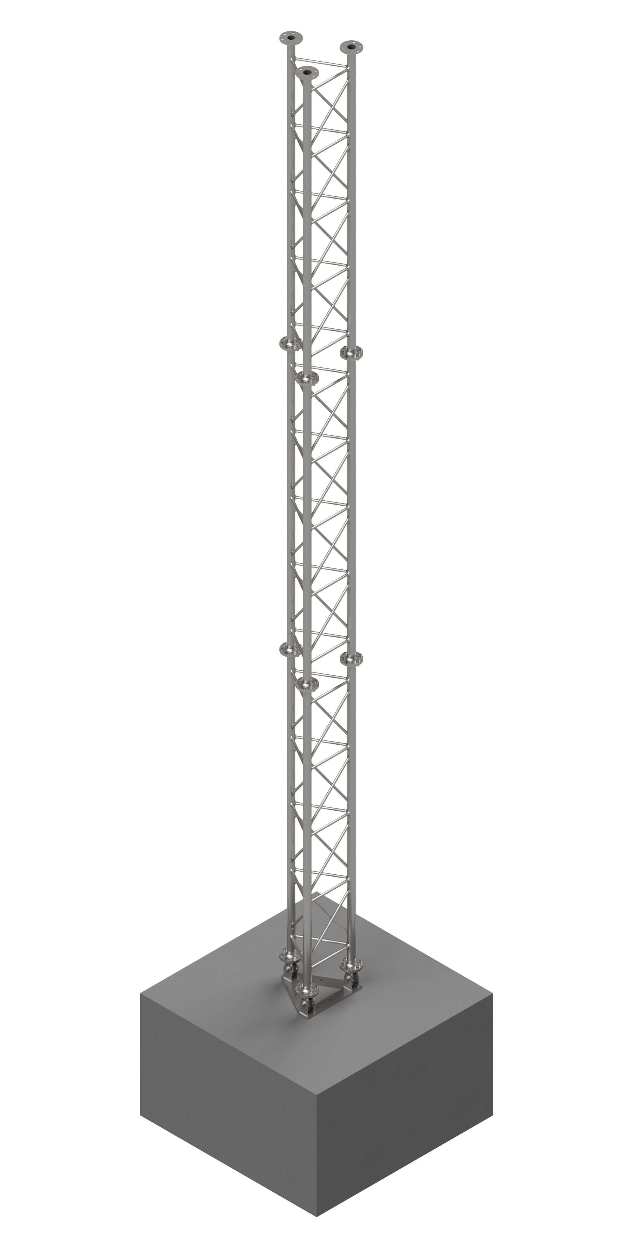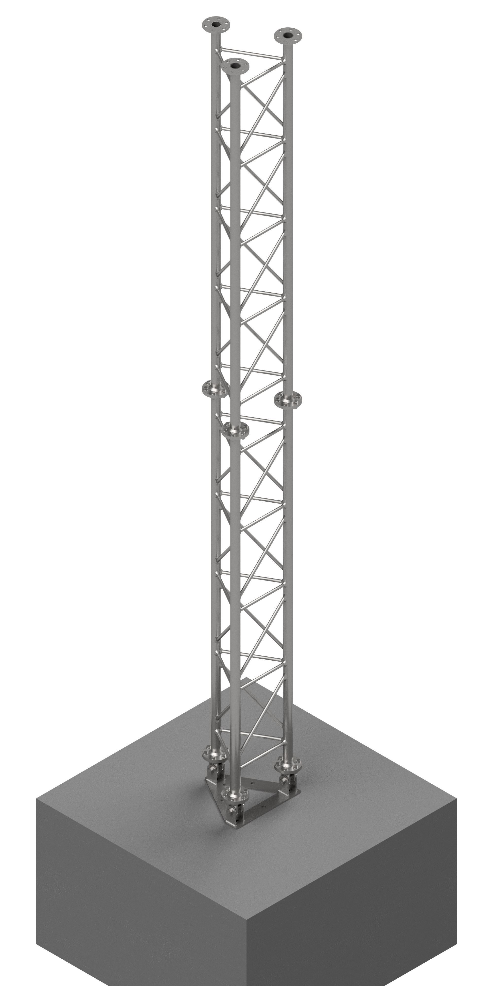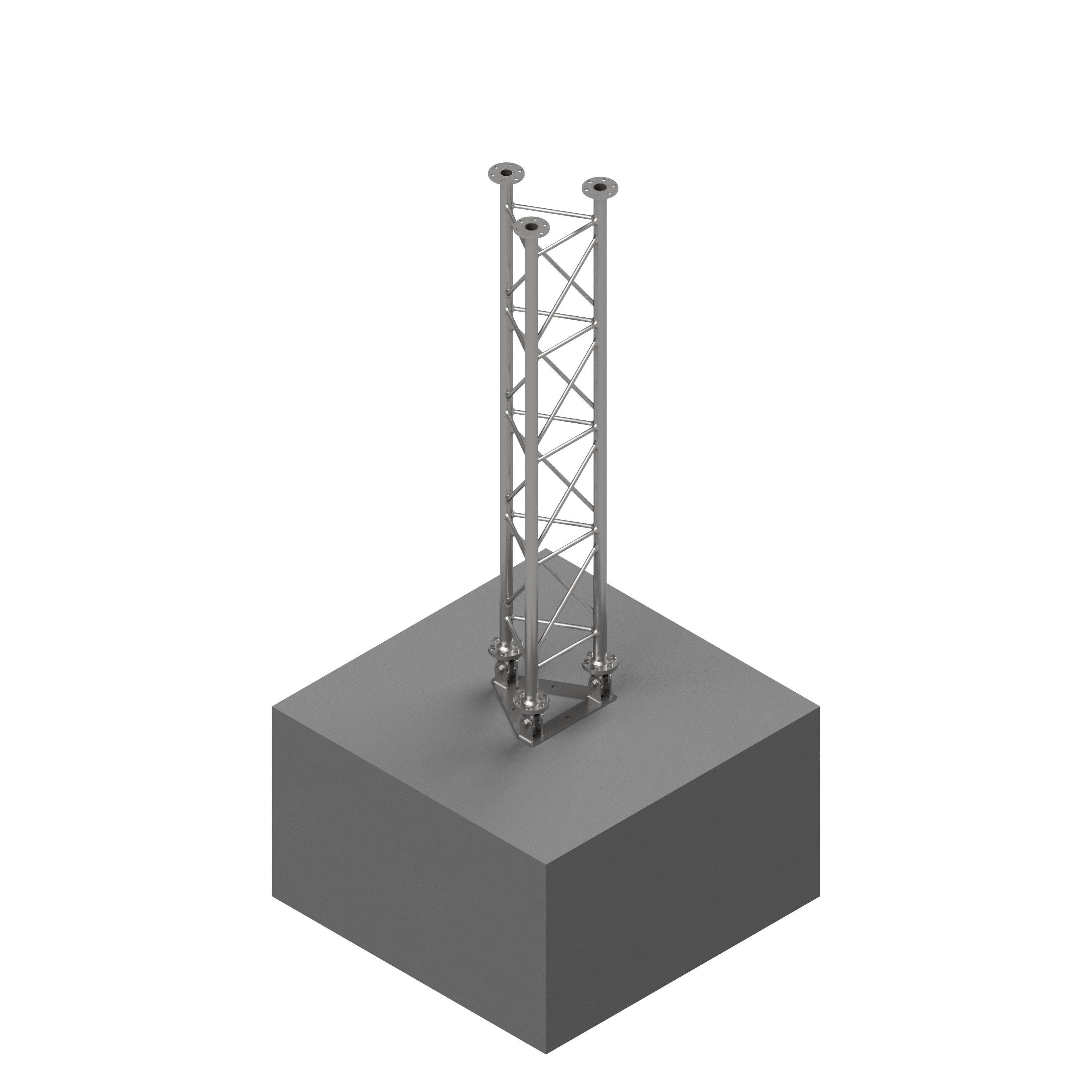 Podstavec 3022870 pro příhradový stožár 3022860. Konstrukce podstavce umožňuje postavení stožáru z horizontální polohy do vertikální. Podstavec se instaluje na betonovou patku.