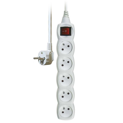 Prodlužovací kabel - 5 zásuvky bílý s vypínačem 2m
