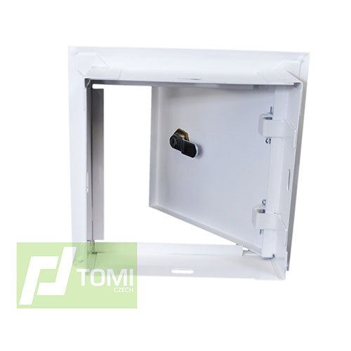Univerzální kovová revizní dvířka se zámkem. Jedna strana dvířek osazena panty, druhá strana zámek. Levá i pravá montáž. U těchto dvířek je možná i stropní montáž. Kovová revizní dvířka jsou vhodná především pro osazení do kontrolních a revizních otvorů. Kovová revizní dvířka jsou vyrobena z kvalitní oceli s polymerním potahem. Možnost montáže do vlhkého prostředí, lehké otevírání a zavírání dvířek, estetický design. Při rekonstrukci bytového jádra, koupelny, WC, kuchyně, najdou tato kovová revizní dvířka bezkonkurenční uplatnění.