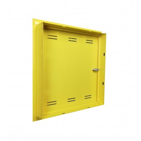 Revizní dvířka na plyn 400x400 Žluté (RAL1021) vypáleno GAZ na dveřích