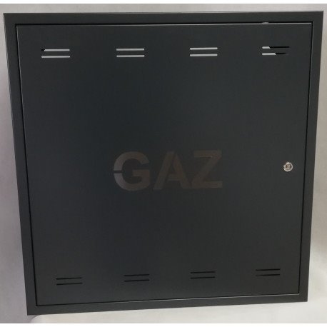Revizní skříňka na plyn 500x500x250. Revizní skříňka na plyn, resp. na hlavní uzávěr plynu. Revizní skříňka na plyn ve standardních rozměrech, ale i v rozměrech na zakázku. Skřínka se používají pro montáž nad omítku, za účelem pokrytí a ochrany plynoměrů umístěných na a v fasádě budovy.