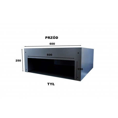 Spodní část skříňky má otvor 150 x 500 mm a čtyři montážní otvory