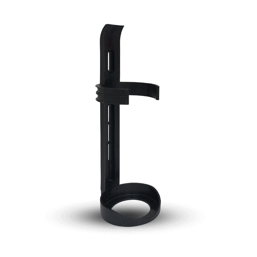Robustní plastový držák SAFE100C umožňuje instalaci hasicího spreje na viditelném, snadno přístupném a trvalém místě tak, aby byl v případě požáru snadno a rychle použitelný. Držák je vyroben z černého plastu.