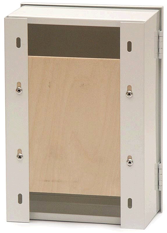 Montážní plechová skříň s dřevěným dnem, uzamykatelná, závěsná, určená pro ochranu a zabezpečení zařízení SAT, TV, FM a WIFI, LAN prvků. Přívod kabelu do skříně zajišťují na horní a dolní straně asi 15mm široká drážka po celé délce Materiál skříně je chráněn galvanickým zinkem proti korozi a povrchově je upravena bílým lakem.