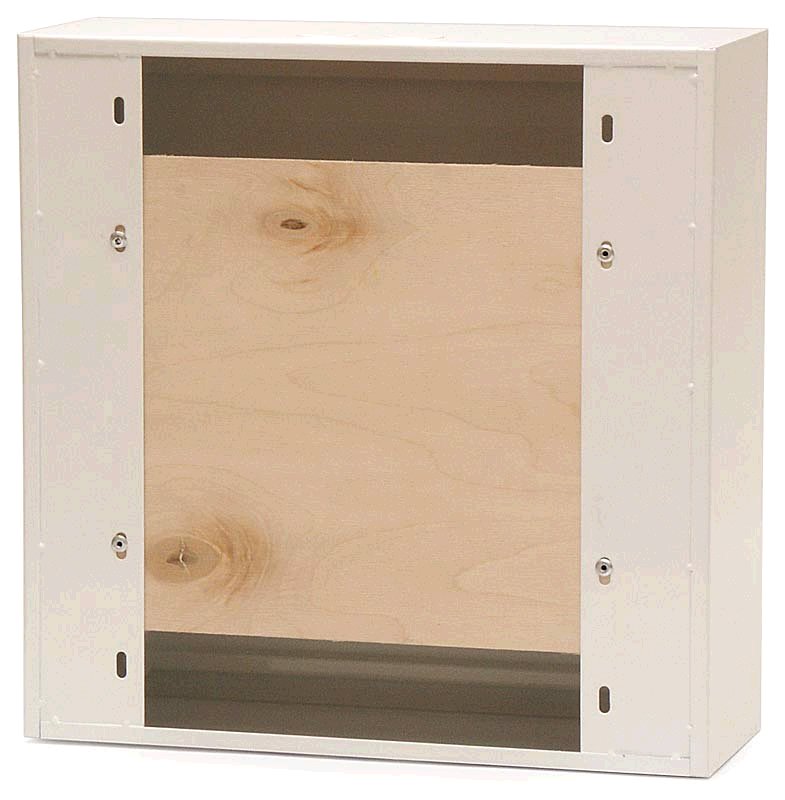 Montážní plechová skříň s dřevěným dnem, uzamykatelná, závěsná, určená pro ochranu a zabezpečení zařízení SAT, TV, FM a WIFI, LAN prvků. Přívod kabelu do skříně zajišťují na horní a dolní straně 2 vyloupnutelné záslepky. Materiál skříně je chráněn galvanickým zinkem proti korozi a povrchově je upravena bílým lakem.