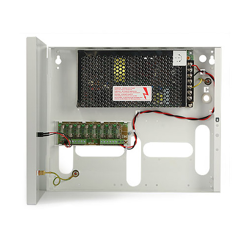 Stabilizovaný napájecí zdroj HPSDC-12V8X1A M18295 je určen k napájení zařízení CCTV vyžadujících stabilizované napětí 12 V DC. Rozsah nastavení výstupního napětí se nastavuje potenciometrem v rozmezí 12÷15 V DC. Napájecí zdroj má 8 výstupů chráněných nezávisle na sobě pojistkami. Porucha (zkrat) ve výstupním obvodu vede k přepálení pojistky a odpojení obvodu od stejnosměrného napájení. PSU je umístěn v kovové skříni s indikačním panelem.