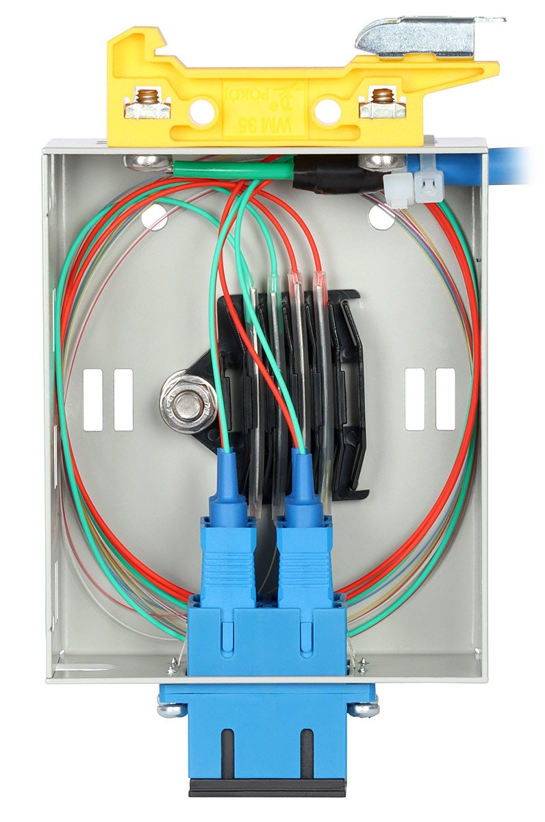 Rozvaděč umožňuje montáž 2 duplexních adaptérů SC nebo 2 čtyřnásobných adaptérů LC. To znamená, že kabel je možné zakončit 2 až 8 vlákny, přičemž se doporučují maximálně 4 vlákna.
