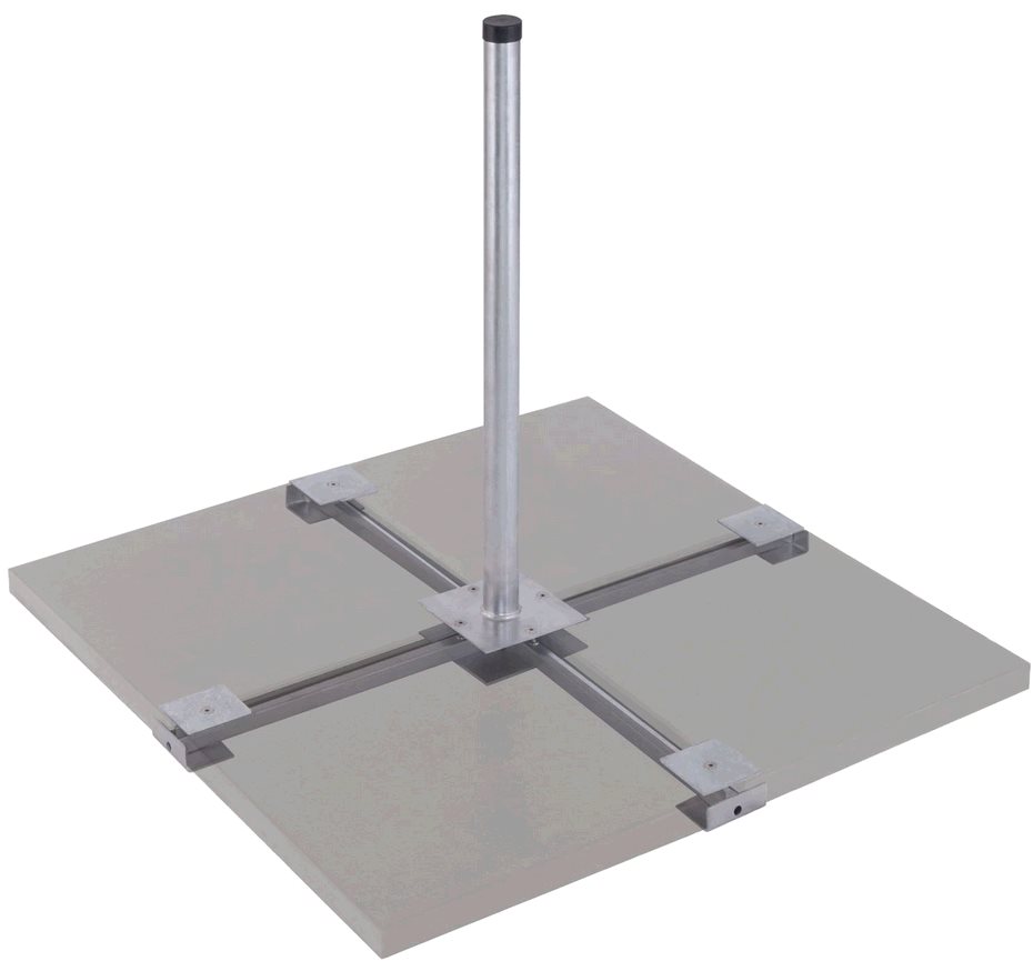 Extrémně stabilní základna pro snadnou instalaci satelitní antény na balkón, kempování atd. Základnový stožár 85cm pro uchycení k dlaždici 50x50cm. Betonová dlaždice není součástí !