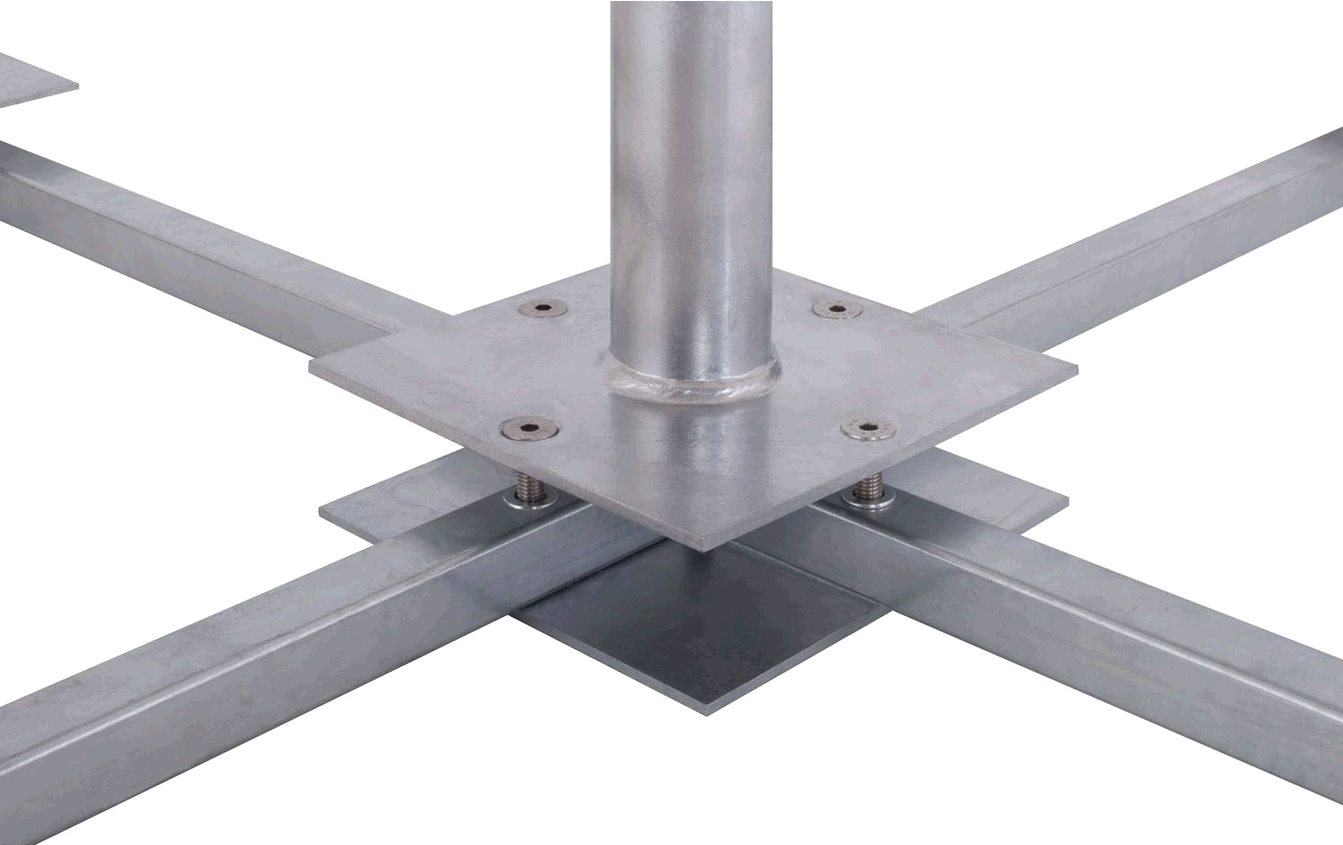 Univerzální stabilní základna pro snadnou instalaci satelitní antény na balkón, kempování atd. Systém nabízí možnost upnutí na 2, 3 nebo 4 betonové desky. Základnový stožár 85cm pro uchycení až ke čtyřem dlaždicím různých rozměrů (40x40, 50x50, 40x60 cm)