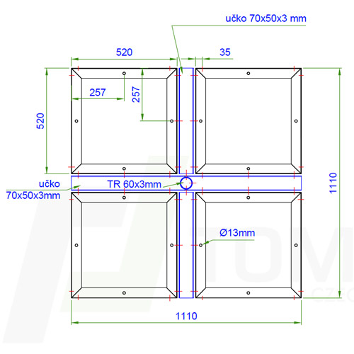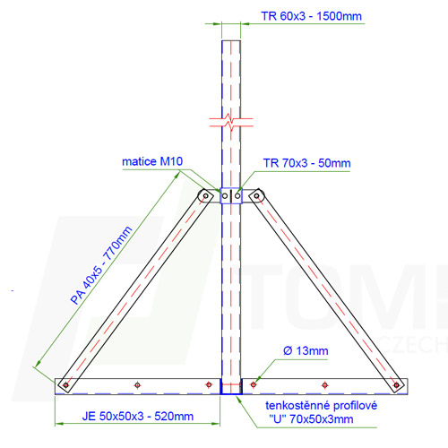 Stožárová základna PROFI 60/3mm o základně 112,5 x 112,5